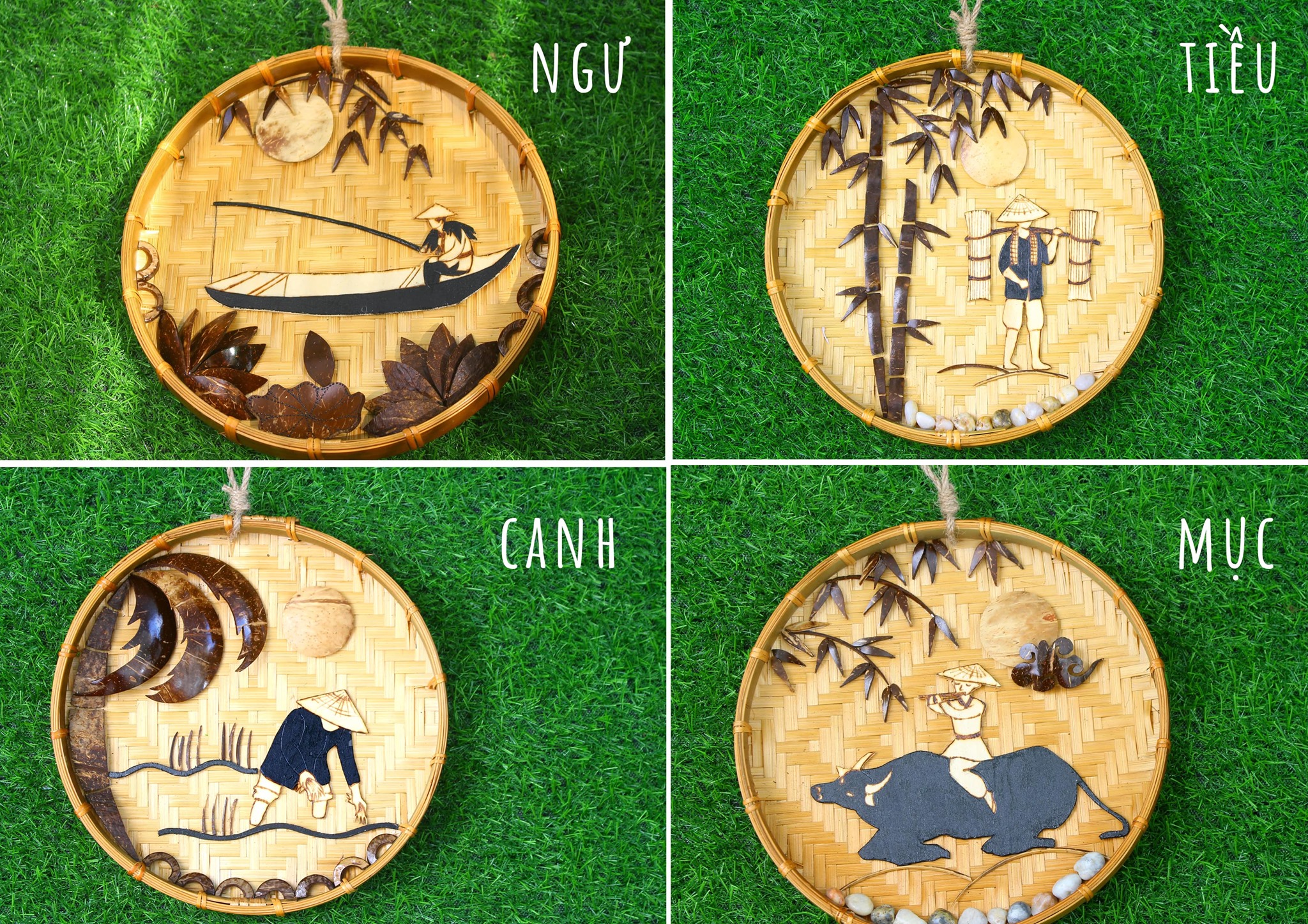 Tranh gáo dừa ốp mẹt tre