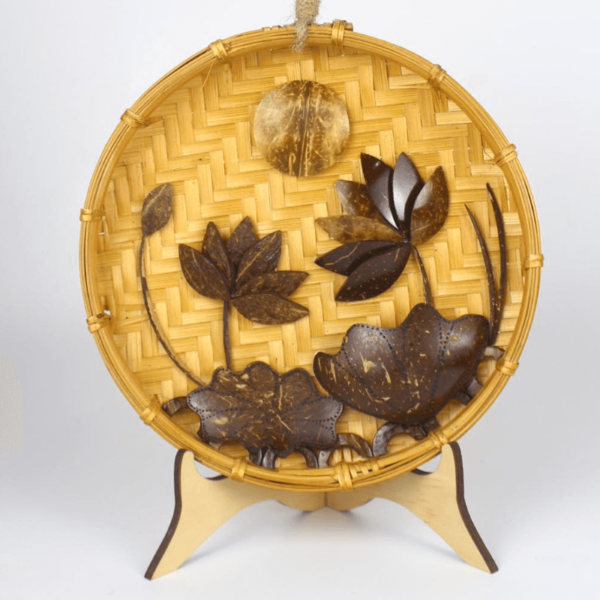 Tranh gáo dừa ốp mẹt tre hoa sen