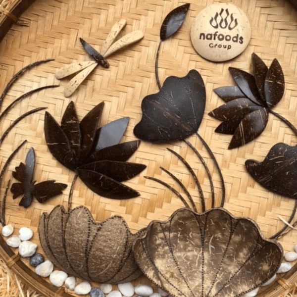 Được gọi là quốc hoa của nước Việt Nam, hoa sen vốn mang trong mình nét đẹp thanh thoát và có ý nghĩa đặc biệt thiêng liêng. Lấy cảm hứng từ loài hoa trang nhã, thanh tú này, các nghệ nhân đã cho ra đời rất nhiều mẫu tranh gáo dừa kết hợp trang trí bằng họa tiết hoa sen trông rất nhẹ nhàng, uyển chuyển và vô cùng tinh tế. Mỗi tấm tranh gáo dừa ốp mẹt tre hoa sen thường sẽ được sử dụng để làm điểm nhấn cho không gian trưng bày, trang trí trong gia đình, những quán ăn, nhà hàng sang trọng,…