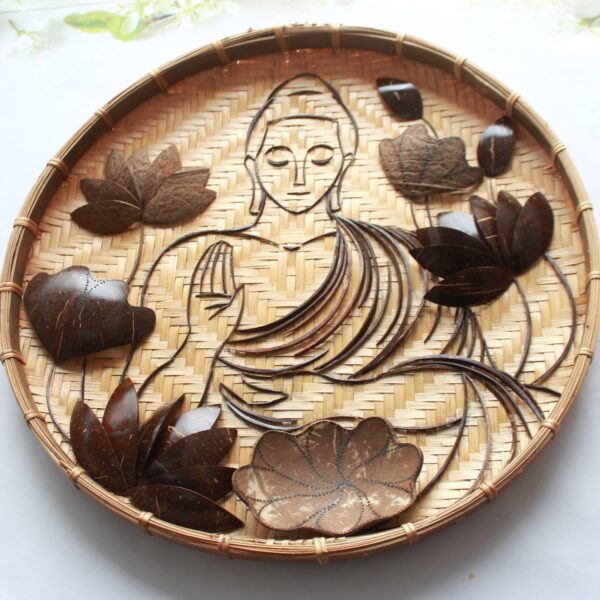Bạn có thể treo loại tranh này ở trong nhà để tạo nên sự trang nhã, tĩnh lặng trong không gian sinh hoạt ấm cúng của gia đình. Bên cạnh đó, loại tranh gáo dừa này còn có thể dùng trang trí cho những quán ăn chay, quán trà đạo mang đậm nét mộc mạc và bình yên.